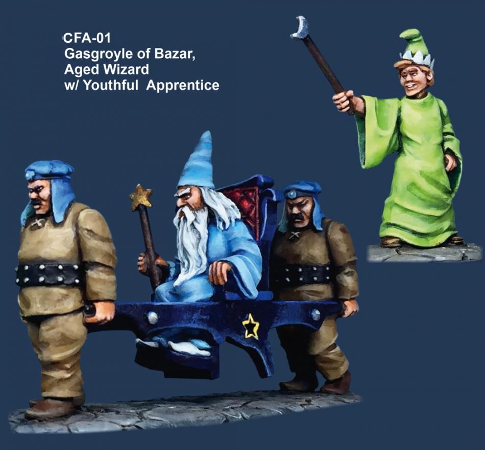Ancient Wizard born in litter accompanied by his young apprentice Newt.