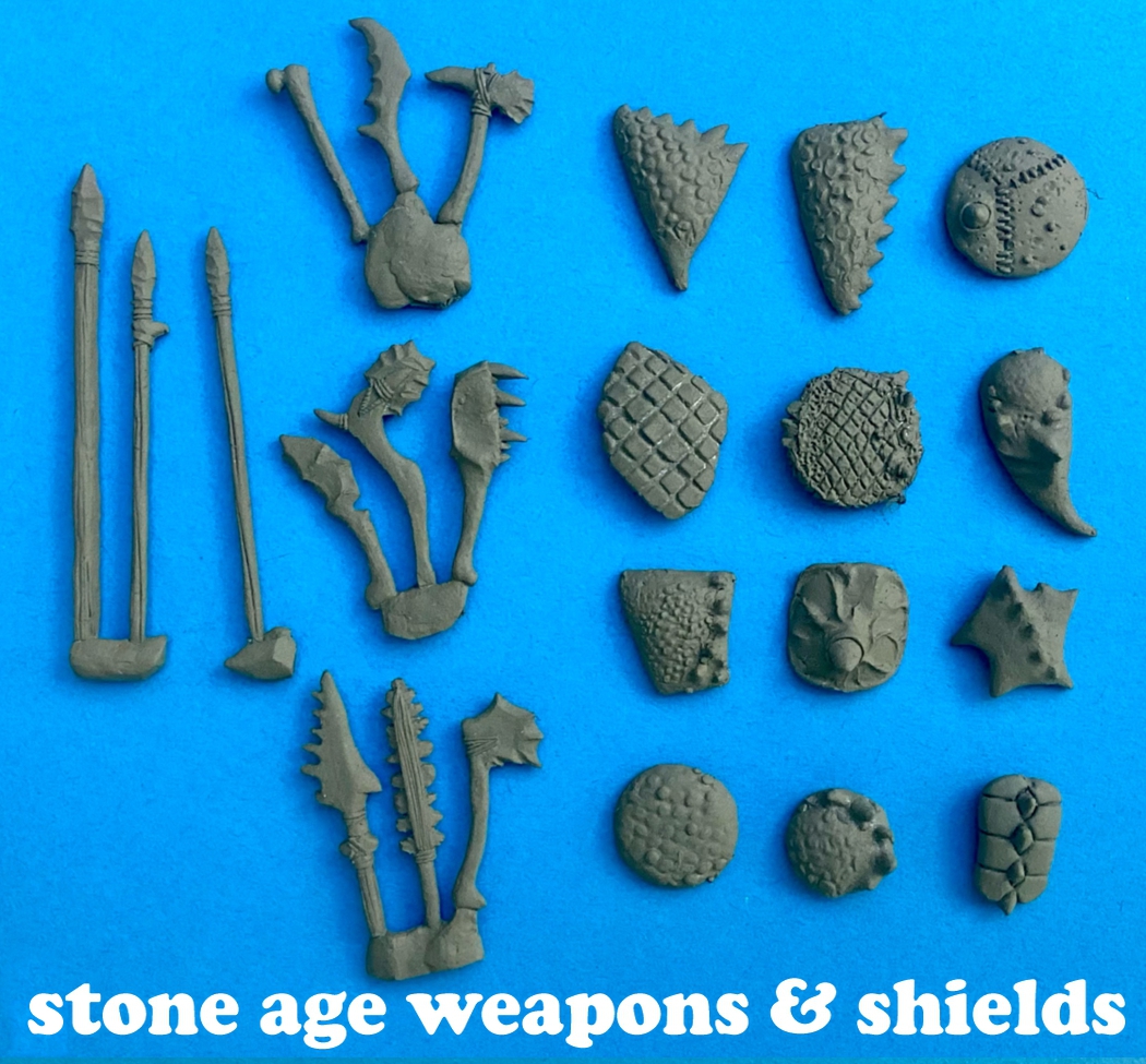 I've done two weapon/shields equipment sets for them, metal and stone age.
