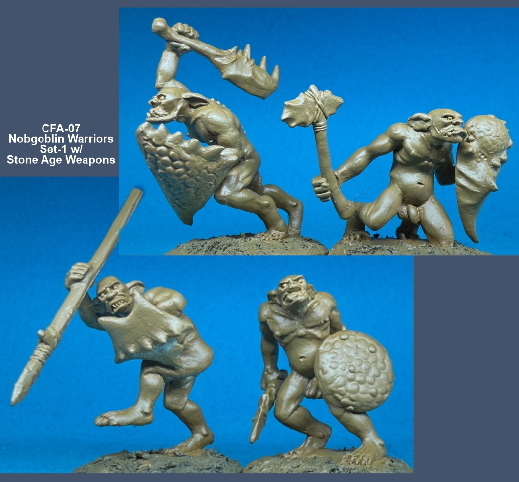 These buggers are about as basic as you get. The Nobgoblins are a throw-back to the era of Fantasy I grew up in. Frazetta book covers, Heavy Metal magazine, Ral Partha Orcs. These minis are general purpose subterranean baddies suitable for Fantasy, Horror and Pulp genres.